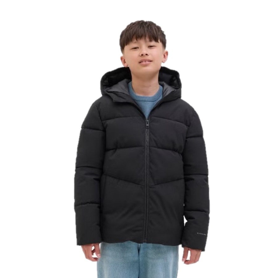 (IVA incluido)Jack & Jones JJGLOBAL Puffer para niño en color negro. Chaqueta acolchada con relleno térmico, capucha forrada y cierre de cremallera. Cómoda, funcional y perfecta para el invierno.