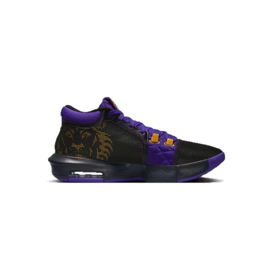 - Diseño en color negro con detalles morados inspirados en la estética de LeBron James.